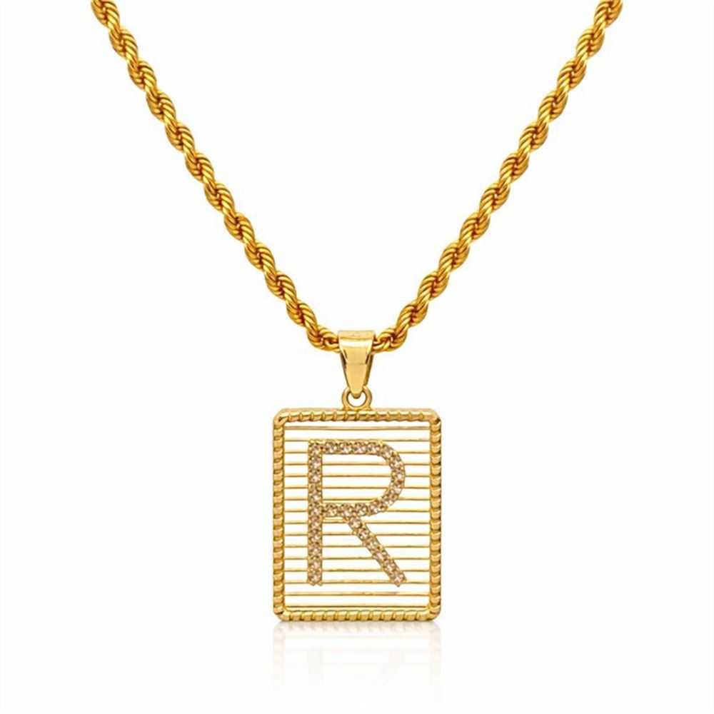 Çizgi Detaylı Kare Taşlı Altın Harf Kolye Ucu – Özel Seri (2,1 × 1,3 cm – 0,15 mm)