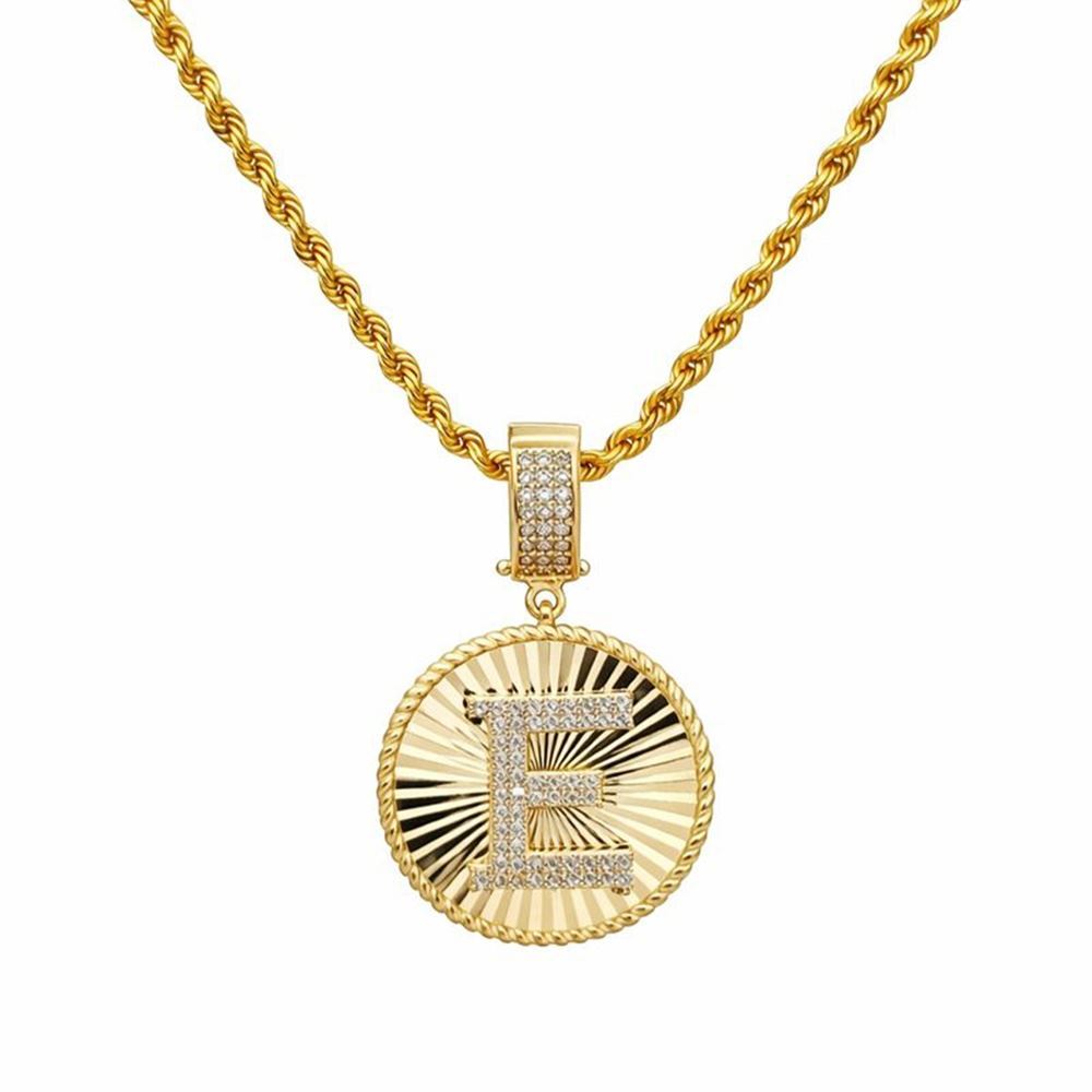 Kalemli Yuvarlak Taşlı Altın Harf Kolye Ucu – Özel Tasarım (2,2 × 2 cm – 0,2 mm)