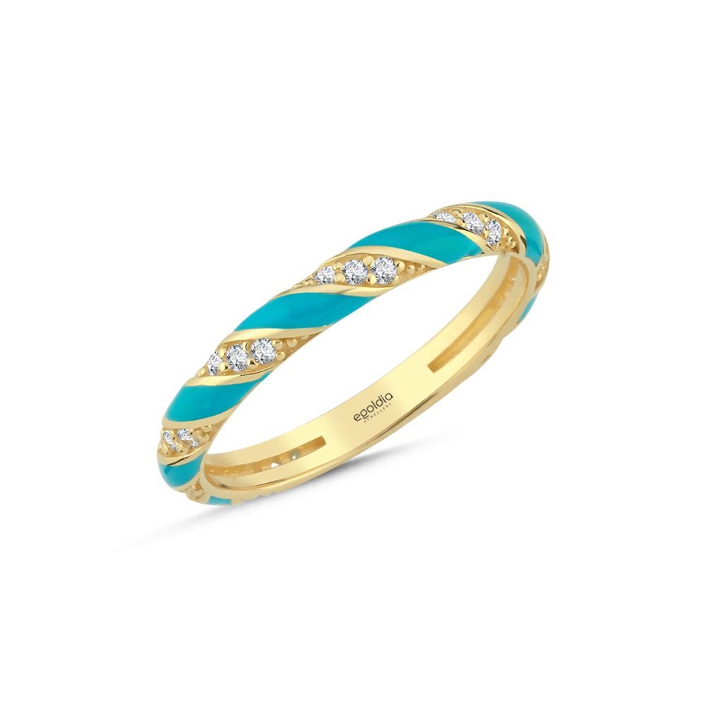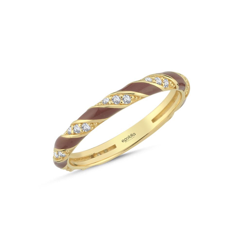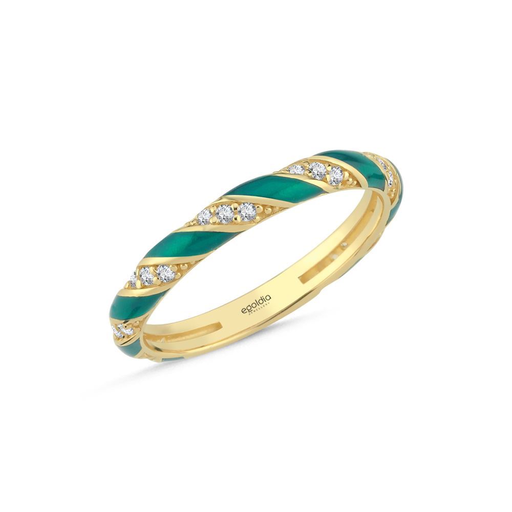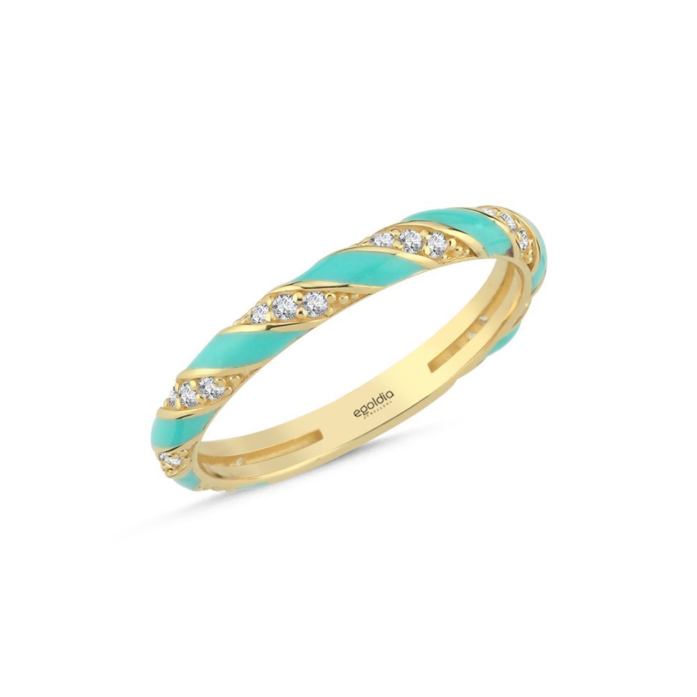 Doğadan ilham alan sarmaşık formu, renkli taş ve mine detaylarıyla birleşerek bu yüzüğe özgün bir karakter kazandırır. 14 ayar gerçek altından üretilen tasarım, sanatsal dokusuyla klasik yüzük modellerinden ayrılır. Canlı renkleri sayesinde tek başına bile güçlü bir stil ifadesi sunar. Özel günlerde şıklığı tamamlayan, günlük kullanımlarda ise fark yaratan bir alternatiftir.